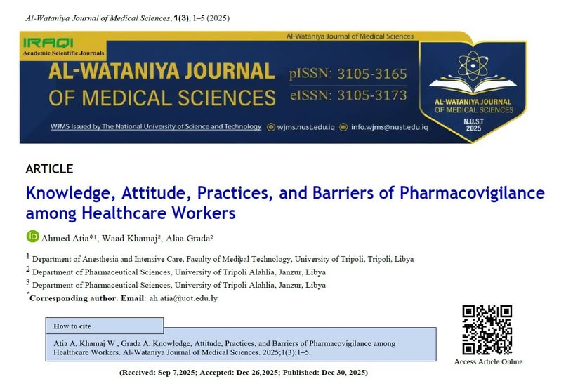 اقرأ المزيدتم بحمد الله نشر بحث علمي جديد بعنوان: المعرفة، المواقف، الممارسات، والعوائق المتعلقة بالتيقظ الدوائي بين العاملين في القطاع الصحي وذلك بمجلةAl-Wataniya Journal of Medical Sciences, issued by The National University of Science and Technology إعداد الخريجات: وعد خماج و آلاء قرادة – قسم ال...