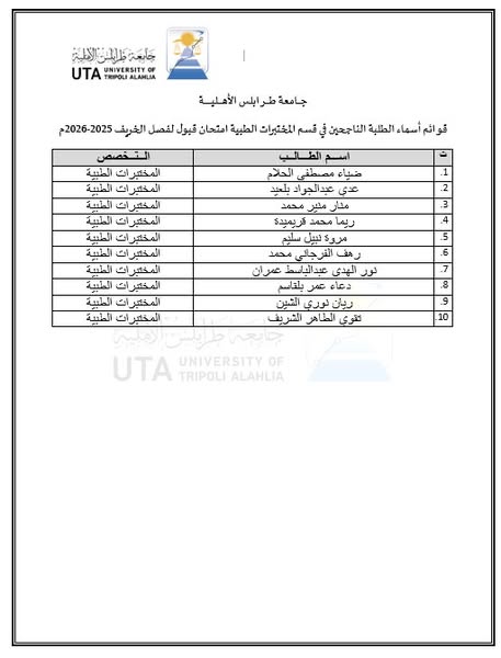 الطلبة المقبولين للدارسة بالجامعة بعد اجتيازهم امتحانات القبول