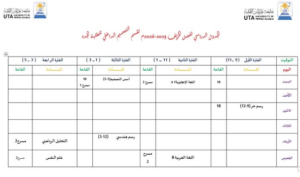 الجدول الدراسي الخاص بالفصول الأولى لفصل الخريف 2026/2025م