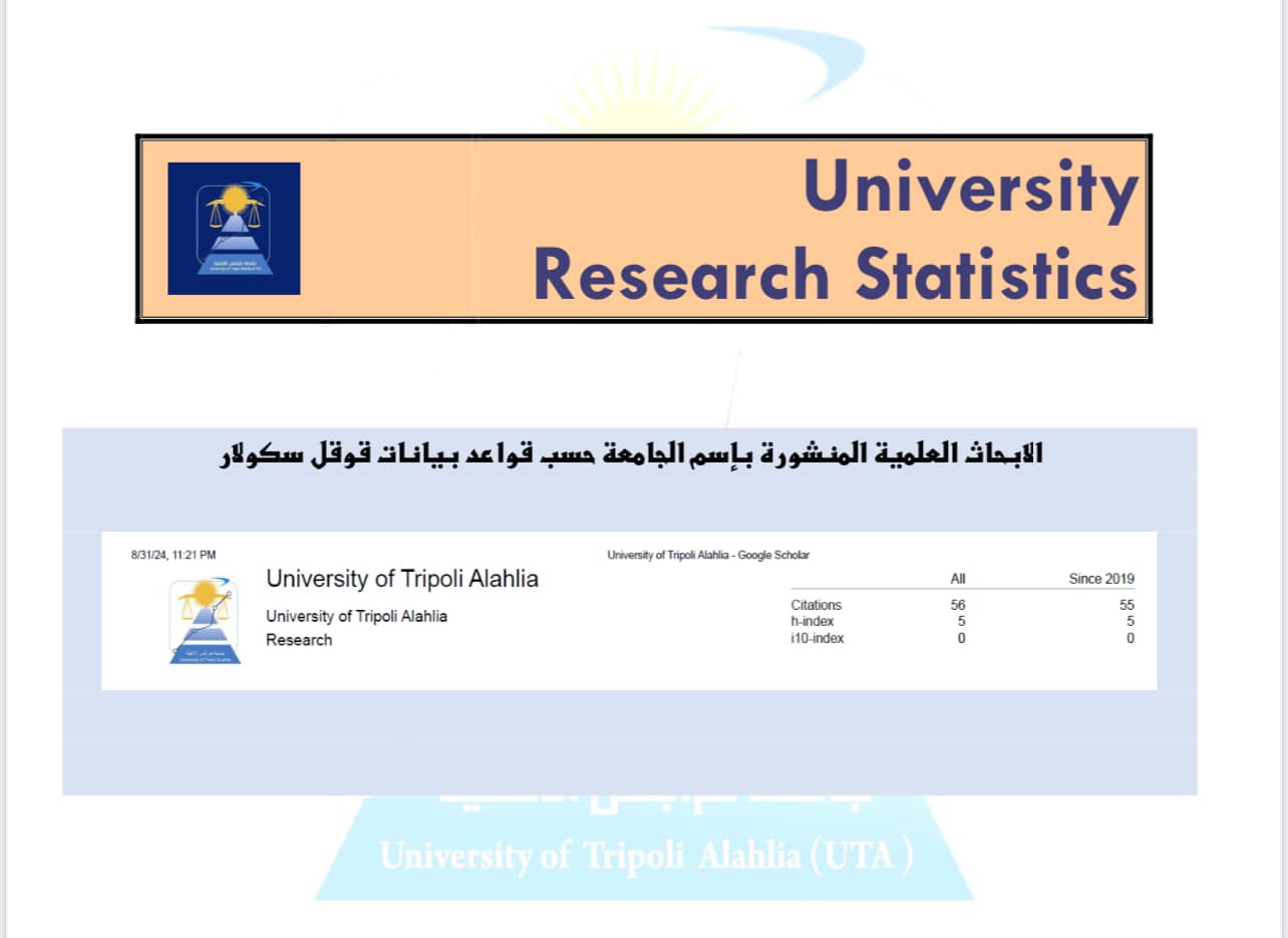 الابحاث العلمية المنشورة بإسم الجامعة حسب قواعد بيانات قوقل سكولار...