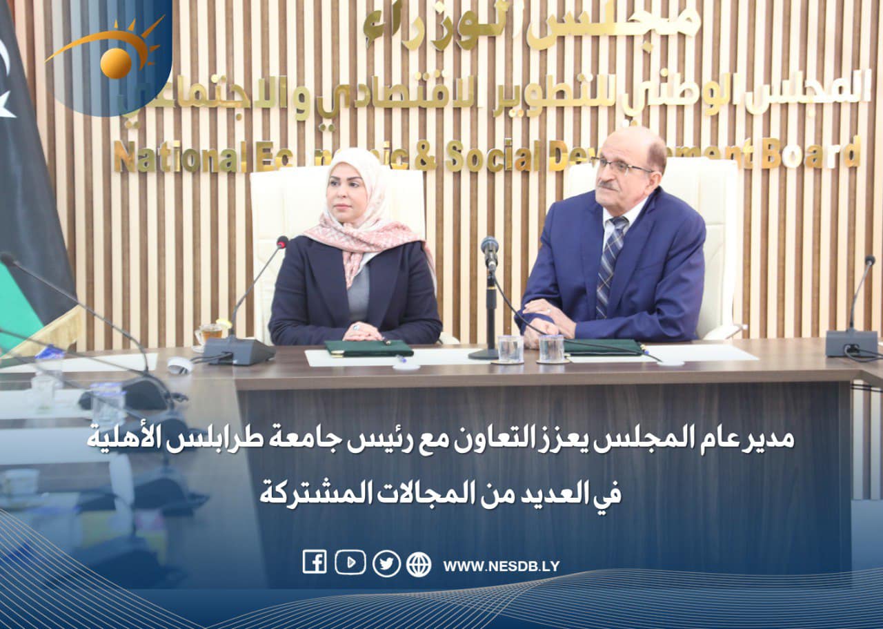 اقرأ المزيدتم اليوم الاثنين في طرابلس الموافق 05 فبراير 2024م، توقيع اتفاقية تعاون مشترك بين جامعة طرابلس الأهلية، والمجلس الوطني للتطوير الاقتصادي والاجتماعي، تهدف هذه الاتفاقية إلي التعاون في المجالات التالية:• الاستشارات وإعداد الدراسات الابحاث.• التطوير المؤسسي وبناء القدرات.• عقد الملتقيات ...