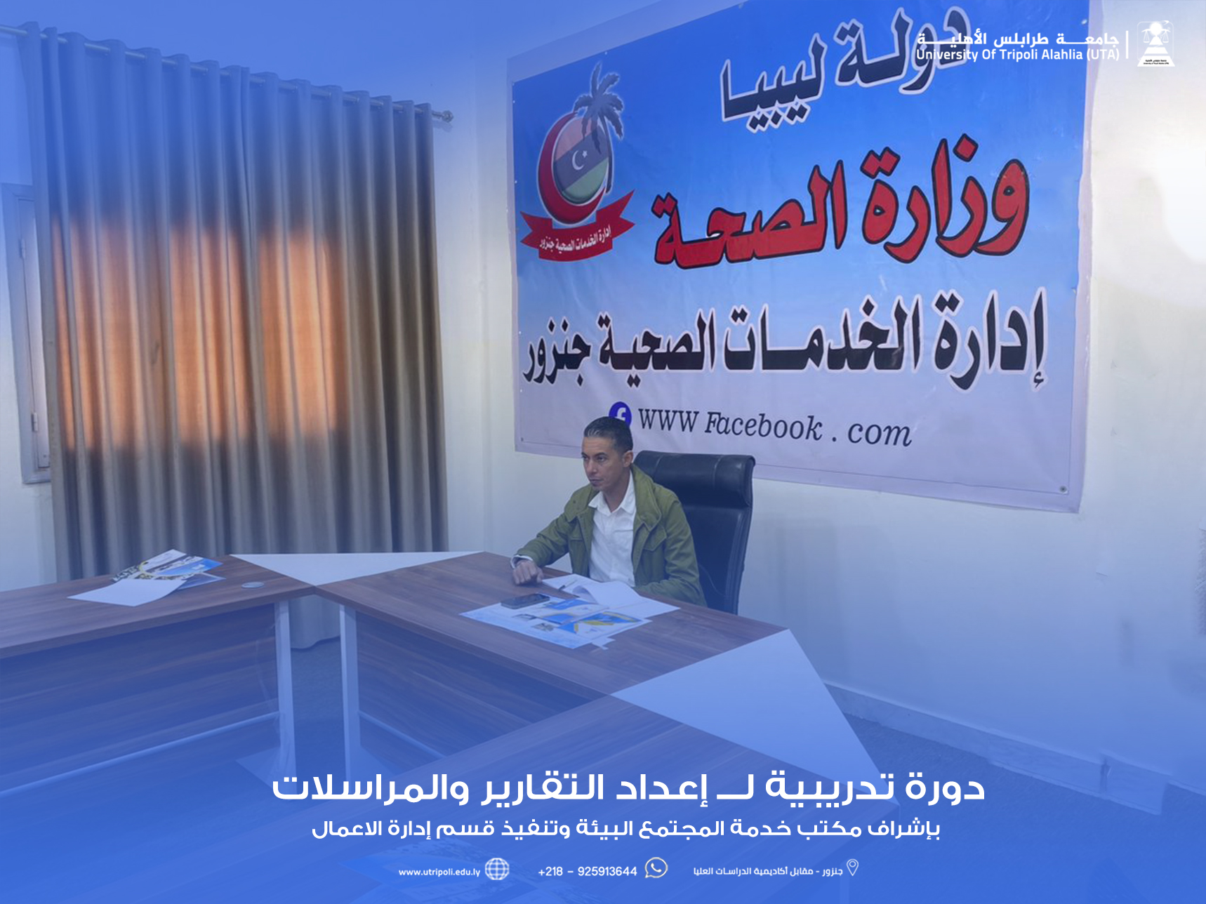 اقرأ المزيدإيمانا من جامعة طرابلس الأهلية بدورها في خدمة المجتمع والبيئة المحيطة أنطلقت اليوم الثلاثاء الموافق 5_12_2023م دورة تدريبية بعنوان ( إعداد التقارير والمراسلات ) استهدفت منتسبي إدارة الخدمات الصحية جنزور بإشراف مكتب خدمة المجتمع البيئة وتنفيذ قسم إدارة الاعمال...