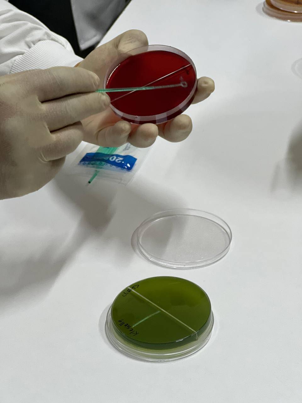 العلوم الصيدلانية متابعات للجانب العملي لمقرر الاحياء الدقيقة . طرق تحضير بعض انواع الاوساط الزراعية مثل MSA و الCLED و زرع انواع بكتيرية مختلفة عليها....
