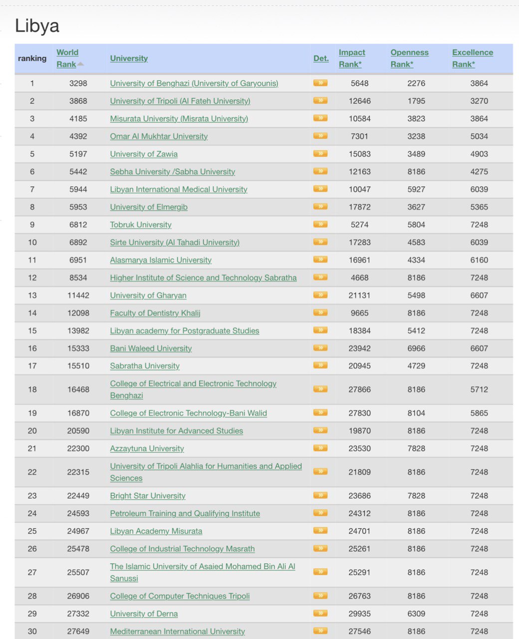 اقرأ المزيدصدور التحديث التاني لعام 2023 لترتيب الجامعات حسب مؤشرات موقع الويبومتركس الاسباني حيث تم تصنيف جامعة طرابلس الاهلية بالمرتب 22 محليا رابط التصنيف https://www.webometrics.info/en/Africa/Libya ...