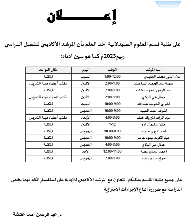 اقرأ المزيدThe Department of Pharmaceutical Sciences carried out a scientific trip for students of the drug course to the Faculty of Agriculture, University of Tripoli This visit comes within the course requirements of the scientific part Under the supervision of Dr. Somaya Abdel Hamid Al-Saad ...