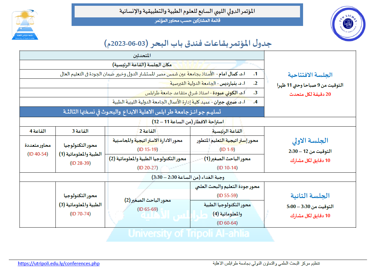 اقرأ المزيدالجدول الزمني لفعاليات المؤتمر الدولي الليبي السابع للعلوم الطبية والتطبيقية والانسانية بجامعة طرابلس الاهلية RTP Live ...