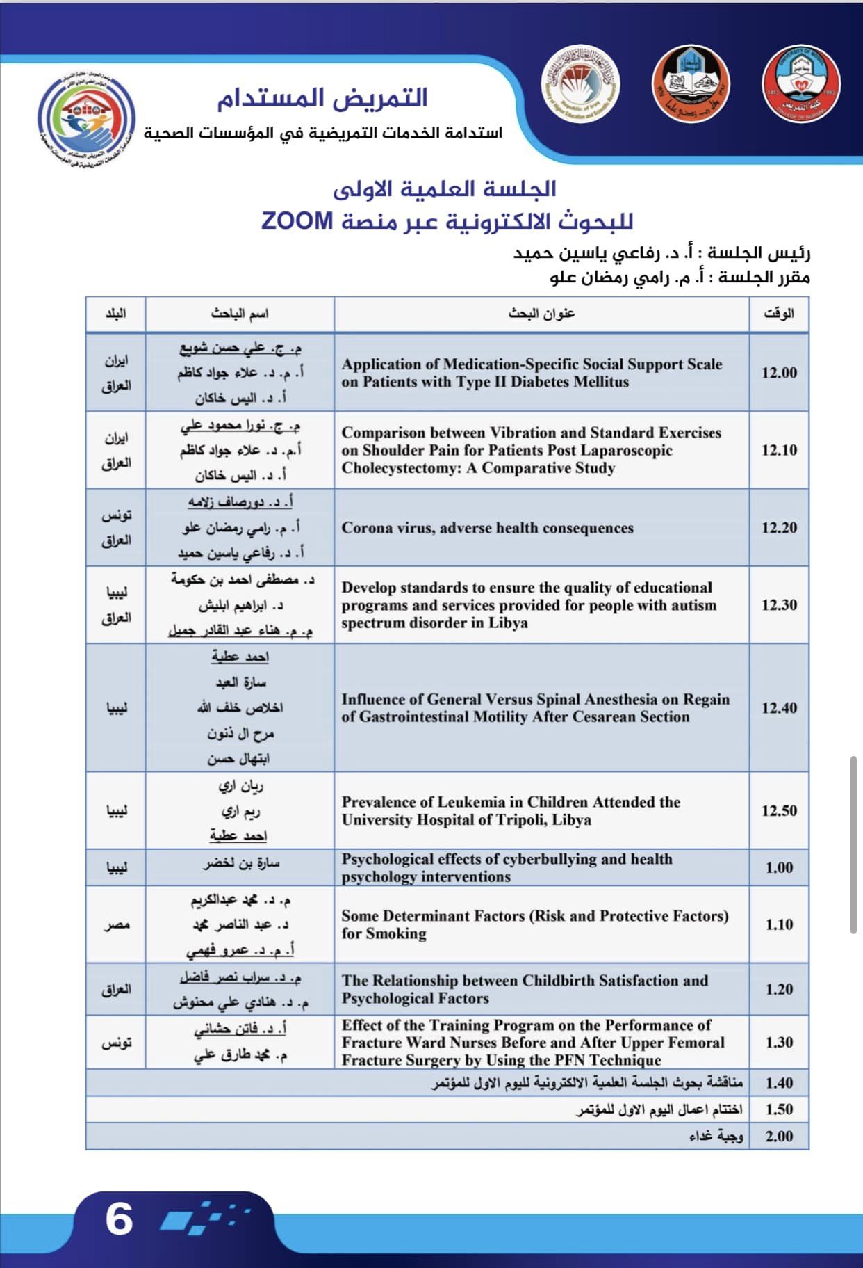 سيتم عرض الورقة البحثية لمشروع تخرج طالبات من قسم المختبرات الطبية بجامعة طرابلس الاهلية ضمن فعاليات المؤتمر الدولي التاني للتمريض المستدام بجامعة الموصل العراق غدا علي تمام الساعة 11:50 بتوقيت ليبيا