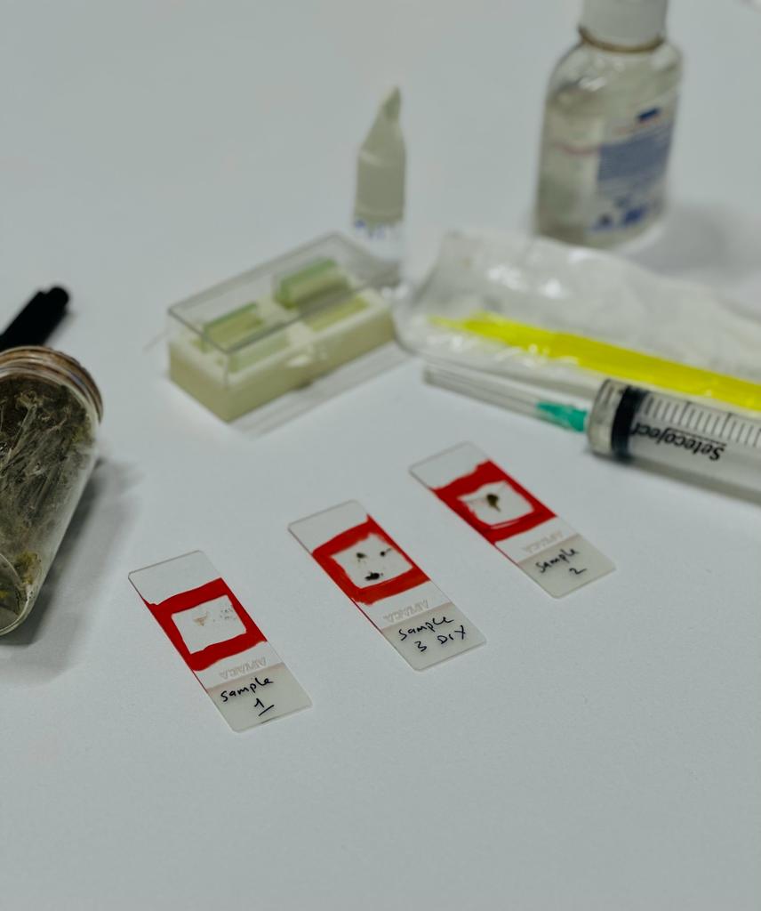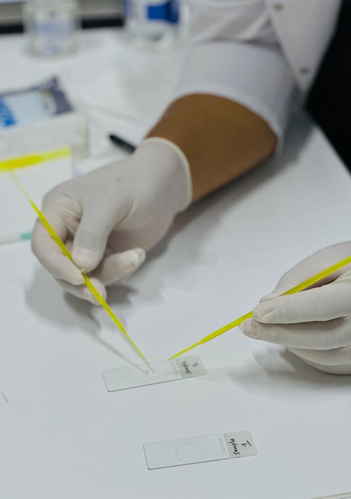 - معمل الأحياء الدقيقة: إحضار عينة نباتية مصابة بعفن فطري و بعد الكشف المجهري تم التعرف عن فصيلة فطرية لأول مرة تدخل المعمل. التركيب الواضح في هذا الفطر هو شكل الconodia خاصتها و المعروفة بالMacroconidia تأتي عادة من سلالات الMicrosporum spp و من سلالات أخري ايضا.