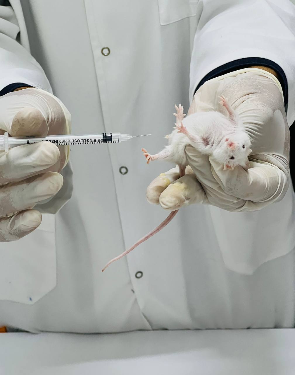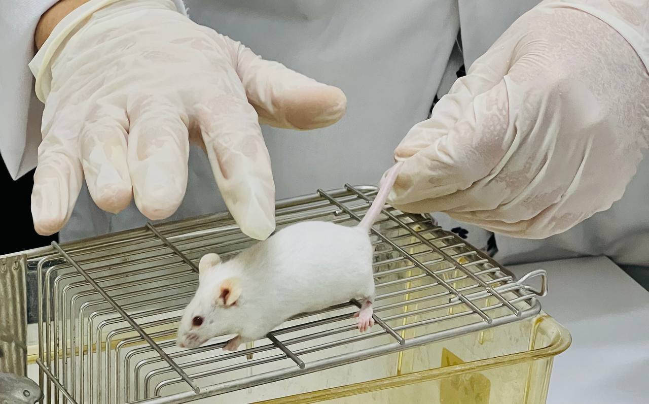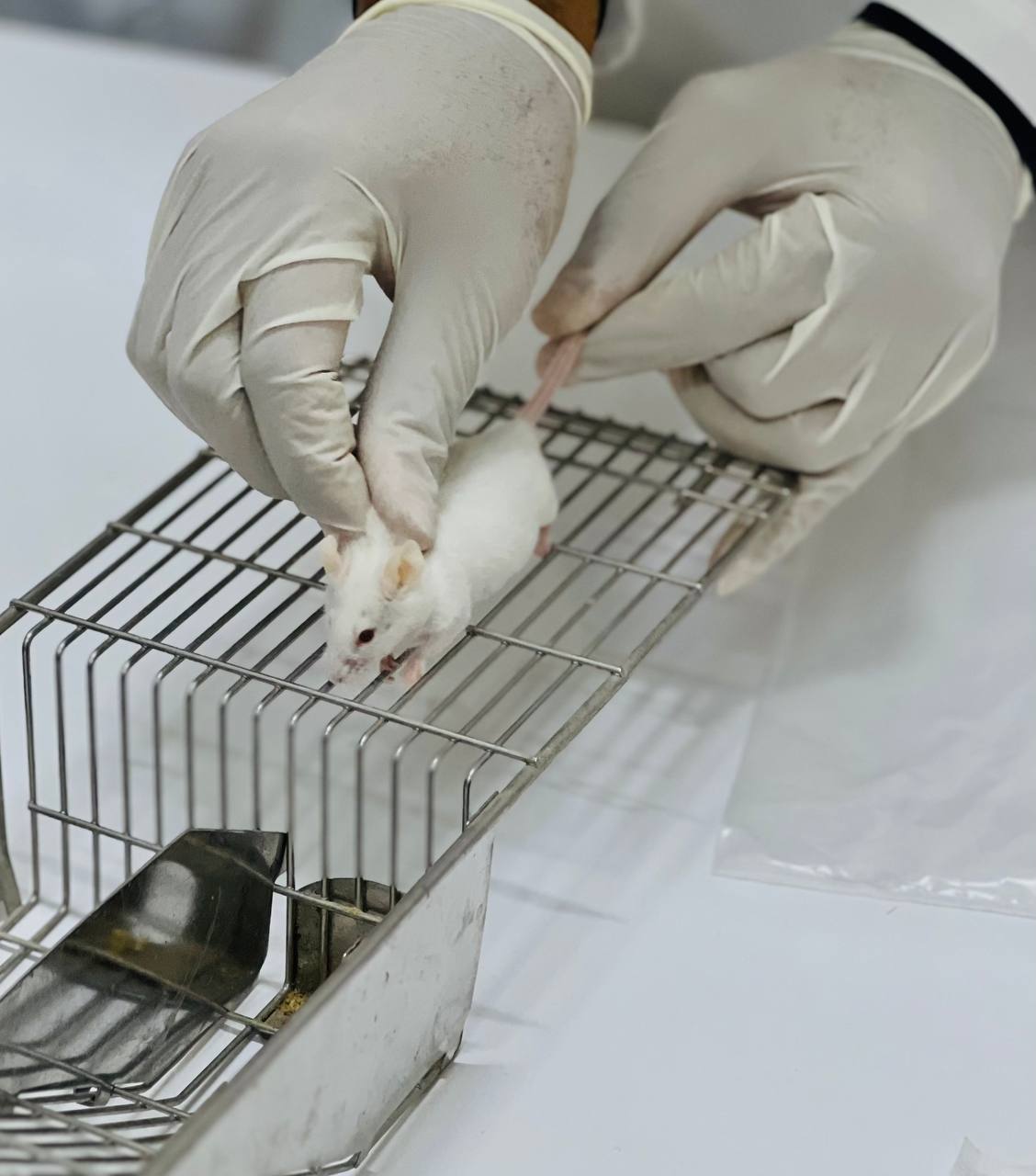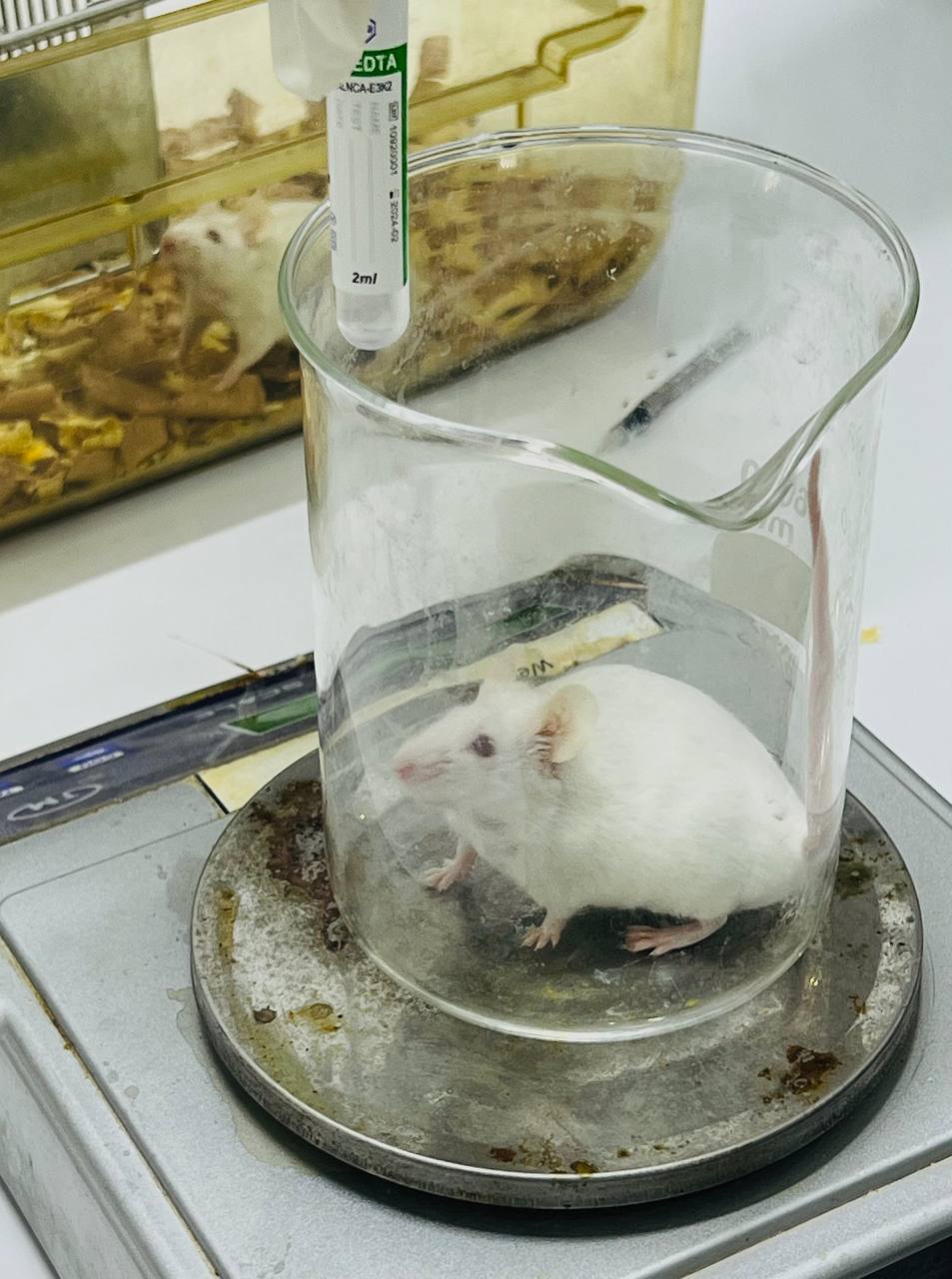 - معمل علم الادوية 2: Mice handling using mechanical restriner + Mice weighing techniques