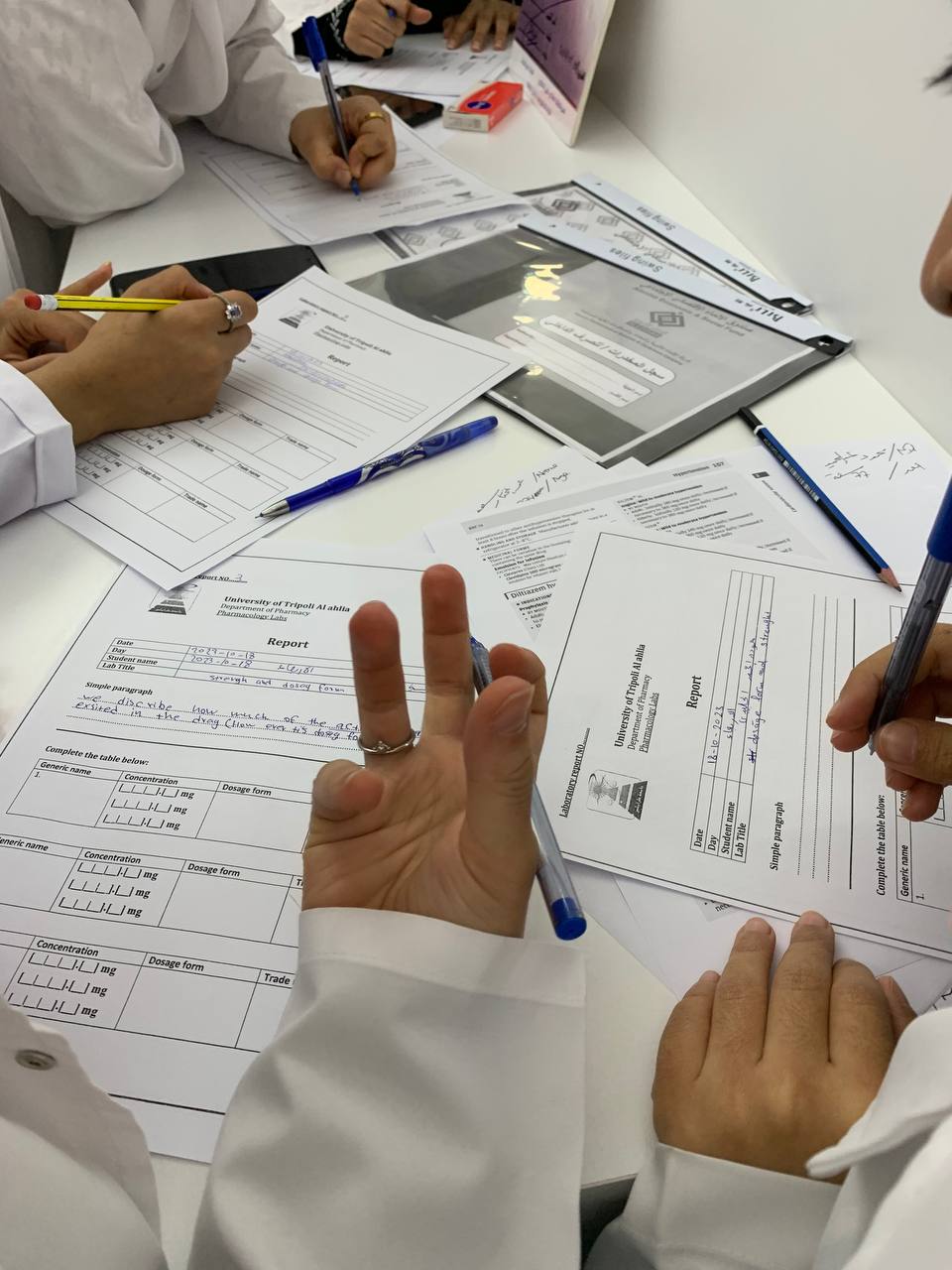 إستمرار التجارب العملية بمختبرات جامعة طرابلس الاهلية لطلاب قسم العلوم الصيدلانية للاسبوع الرابع