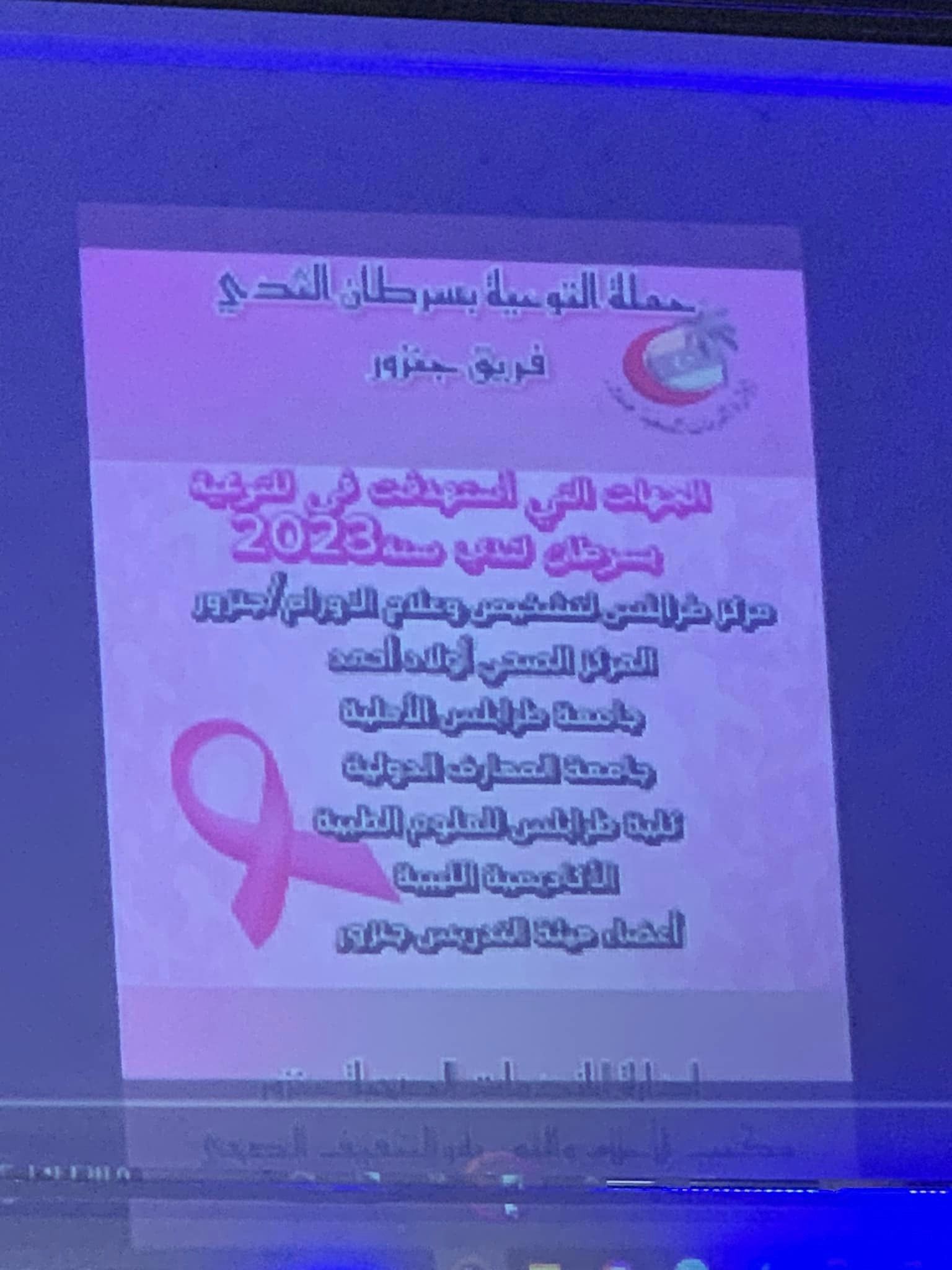 مشاركة جامعة طرابلس الاهلية في اليوم الختامي لحملة اكتوبر الوردي بدعوة من إدارة الخدمات الصحية جنزور اليوم بمسرح الاكاديمية الليبية للدراسات العليا