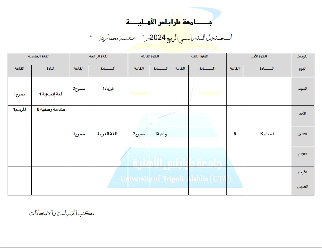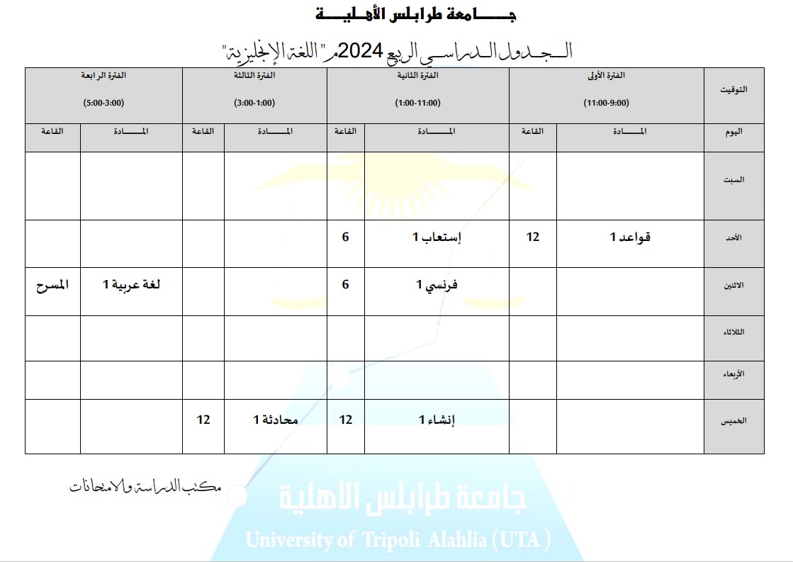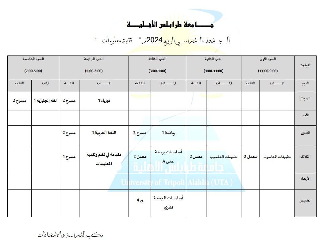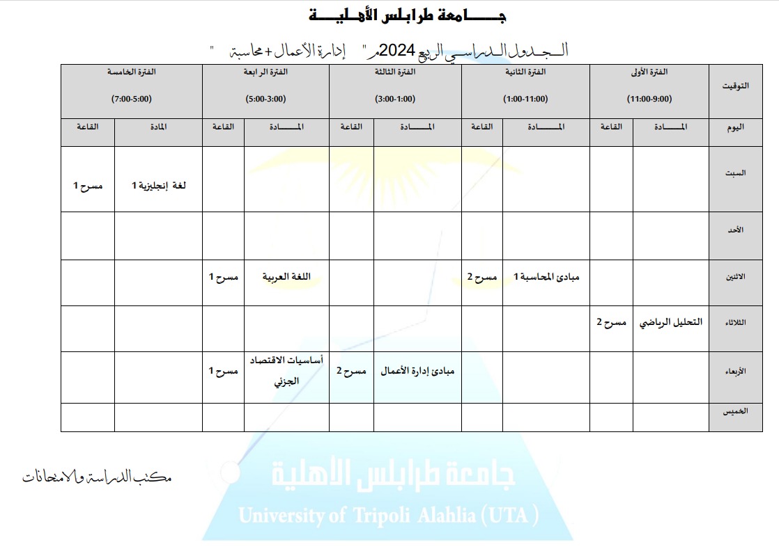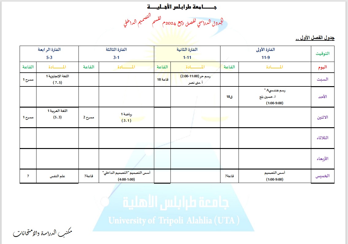 بالجدول الدراسي لطلبة الفصل الأول "الطلبة الجُدد "