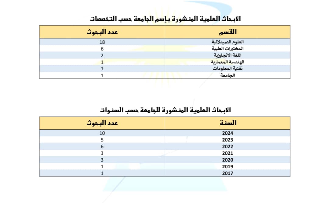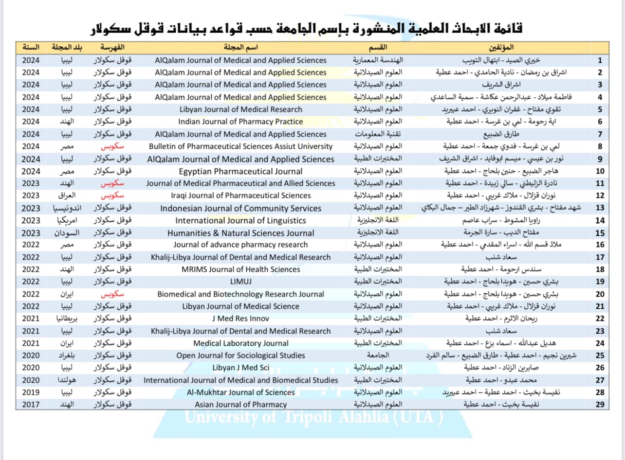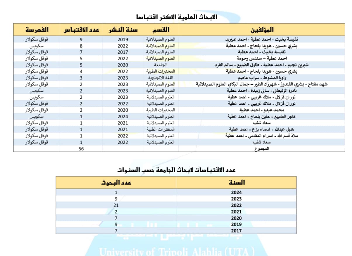 الابحاث العلمية المنشورة بإسم الجامعة حسب قواعد بيانات قوقل سكولار