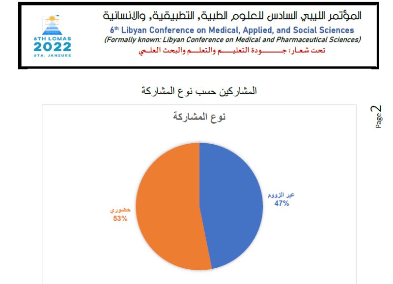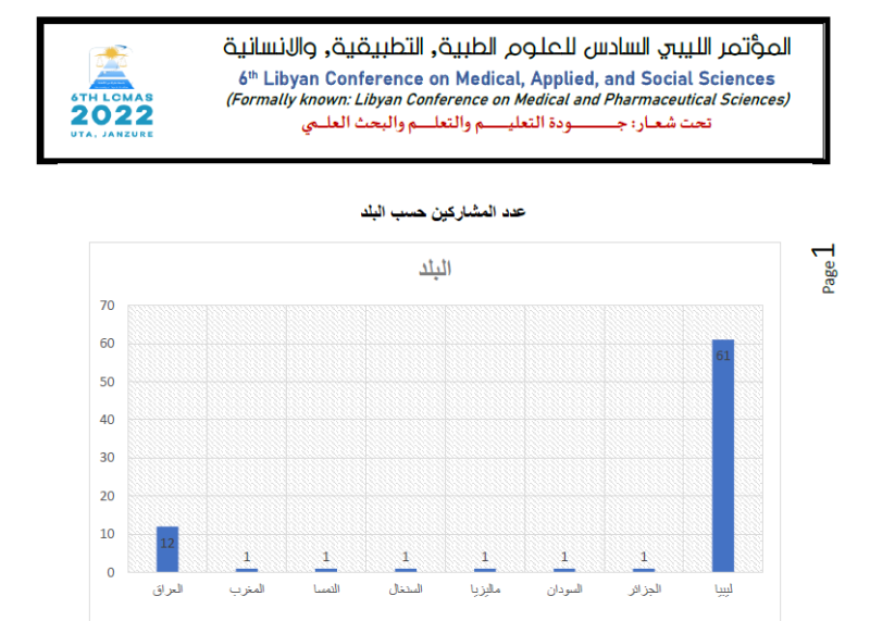 احصائيات حول البحوث المقبولة بالمؤتمر المؤتمر الليبي السادس للعلوم الطبية, التطبيقية, والانسانية 2022