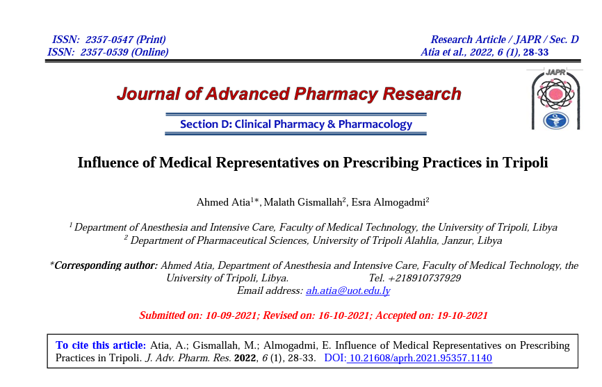 Influence of Medical Representatives on Prescribing Practices in Tripoli