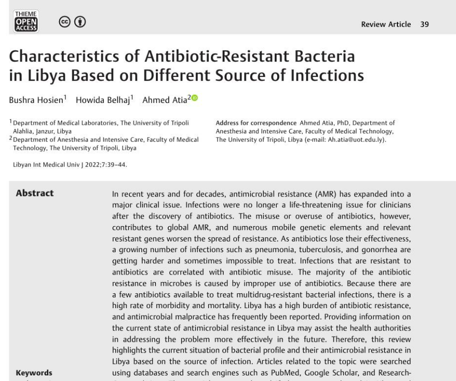Characteristics of Antibiotic-Resistant Bacteria in Libya Based on Different Source of Infections